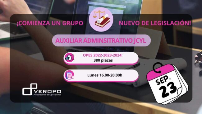 Abrimos nuevo grupo de legislación de Auxiliar Administrativo JCYL el lunes 23 de septiembre ¡Qué alegría, qué alboroto…otro grupo de Junta lleno en Veropo! Así es, y es que empezamos grupos para preparar la posible inminente Convocatoria de un máximo de 380 plazas como Auxiliar Administrativo JCYL hace 20 días y se llenaron antes de…