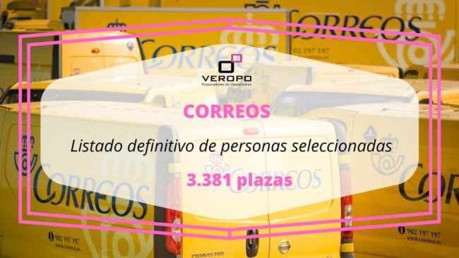 Correos publica el listado definitivo de las personas seleccionadas para cubrir las 3.381 plazas de la Convocatoria de 2019 ¡Seguimos con noticias sobre Correos! Tras la publicación de las personas preseleccionadas para cubrir 3.381 plazas hoy ya tenemos el listado definitivo de las personas aspirantes que han sido seleccionadas para ocupar estas plazas. Correos ha…