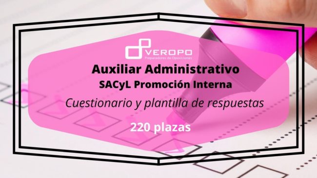 El SACyL publica el cuestionario y la plantilla de respuestas del ejercicio único para optar a las 220 plazas convocadas de Auxiliar Administrativo por Promoción Interna Había 220 plazas convocadas en la escala de Auxiliar Administrativo del SACyL por Promoción Interna. El ejercicio único tuvo lugar el sábado 19 de febrero y a día de hoy,…