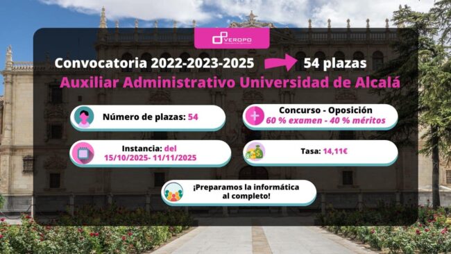 La Universidad de Alcalá convoca 54 plazas como Auxiliar Administrativo de las ofertas de empleo 2022, 2023 y 2025 ¡Vaya notición para los opositores y opositoras amantes de las Universidades! Hay una gran Convocatoria con un total de 54 plazas como Auxiliar Administrativo en la Universidad de Alcalá. ¿Lo mejor? Que si estáis preparando Auxiliar…