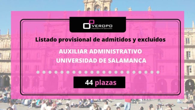 La Universidad de Salamanca publica el listado provisional con los aspirantes admitidos y excluidos para conseguir una de las 44 plazas convocadas ¡Seguimos para plaza! La Universidad de Salamanca ha publicado el listado provisional de admitidos y excluidos para el proceso selectivo de 44 plazas de Auxiliar Administrativo. En este listado aparece el estado de…