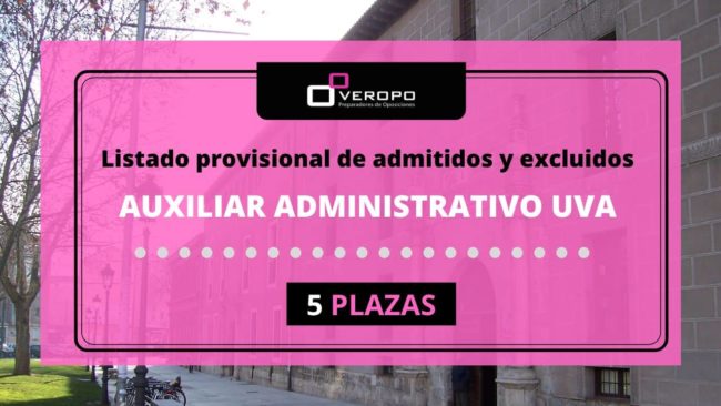 La UVa publica el listado provisional de admitidos y excluidos referente a la Convocatoria de 5 plazas de Auxiliar Administrativo ¡Martes de novedades! ¿Echaste la instancia para lograr una de las 5 plazas convocadas de Auxiliar Administrativo de la UVa? ¡Esto te interesa! Y es que esta mañana la Universidad de Valladolid ha publicado el…