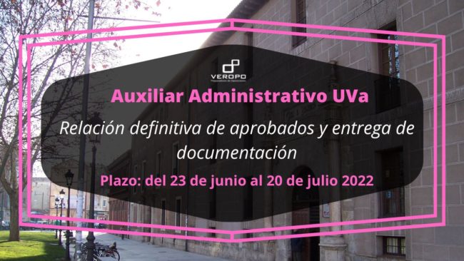 El plazo de entrega de documentación para los aprobados de Auxiliar Administrativo UVa es hasta el 20 de julio 2022 ¡Novedades en la UVa! Y es que hemos conocido el listado definitivo de aprobados que han superado el ejercicio único de Auxiliar Administrativo UVa, por orden de puntuación. Ya os comentamos la gran noticia de que 30 de…