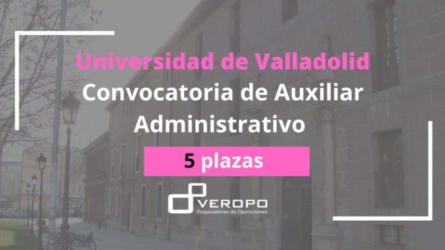 La Universidad de Valladolid convoca 5 plazas de Auxiliar Administrativo por concurso-oposición referentes a la Oferta de Empleo 2022  El ritmo no se detiene en las oposiciones y es que ya os lo anunciábamos meses atrás; se espera un final de año por todo lo alto en cuanto a convocatorias. Hoy tenemos entre las manos…