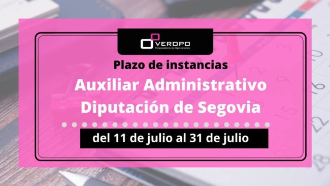 El plazo para participar en el proceso selectivo de 12 plazas de Auxiliar Administrativo de la Diputación de Segovia es de 20 días naturales: del 11 de julio al 31 de julio Si entre tus planes más inmediatos está el de conseguir una plaza y trabajo fijo en Segovia empiezas a estar de enhorabuena porque…