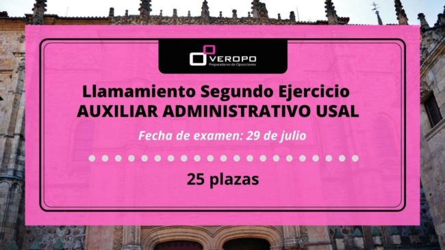 El jueves 29 de julio a las 16:30h en el Campus Ciencia será el llamamiento para realizar el segundo ejercicio de Auxiliar Administrativo de la Universidad de Salamanca para conseguir una de las 25 plazas convocadas ¡Llamamiento a los opositores de Auxiliar Administrativo de la USAL! ¡Se acerca vuestro momento! Ya vamos tachando los días…