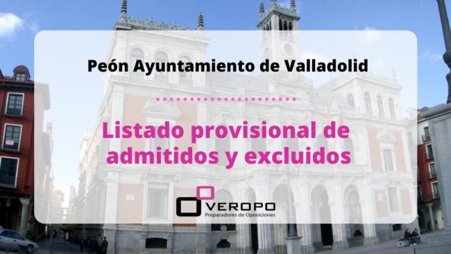 El Ayuntamiento de Valladolid ha publicado el listado provisional de admitidos y excluidos para cubrir las 68 plazas de Peón Si echaste la instancia para conseguir una plaza de Peón del Ayuntamiento de Valladolid ya puedes comprobar si estás dentro del listado provisional de admitidos o excluidos y las causas de exclusión. Esta lista es provisional…