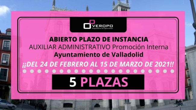 Abierto el plazo de instancia para 5 plazas de Auxiliar Administrativo del Ayuntamiento de Valladolid por promoción interna