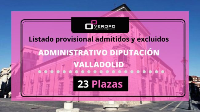 La Diputación de Valladolid publica el listado provisional con los aspirantes admitidos y excluidos para conseguir una de las 23 plazas convocadas Paso a paso estamos a un paso de conseguir una plaza de Administrativo de la Diputación de Valladolid. El paso adelante que se ha dado hoy es que ya tenemos el listado provisional…
