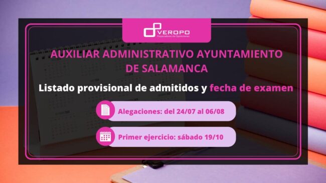 El Ayuntamiento de Salamanca aprueba el listado provisional de admitidos y excluidos para la Convocatoria de 28 plazas como Auxiliar Administrativo y fija el primer ejercicio el 19 de octubre ¡Empieza la cuenta atrás! Calor, verano y listados. Y no es la mezcla de un cóctel, es la combinación a la que nos estamos acostumbrando…