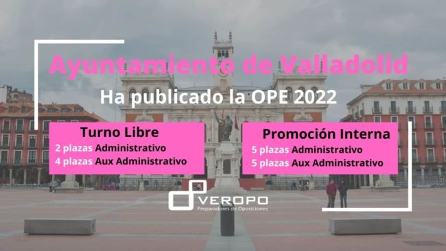 El Ayuntamiento de Valladolid ha publicado la Oferta de Empleo del 2022 que incluye plazas de Administrativo y Auxiliar Administrativo por Turno Libre y por Promoción Interna A las puertas de las vacaciones y con las maletas casi llenas, nos faltaba el último tirón para cerrar la cremallera ¡más plazas! Sí, así como lo lees.…
