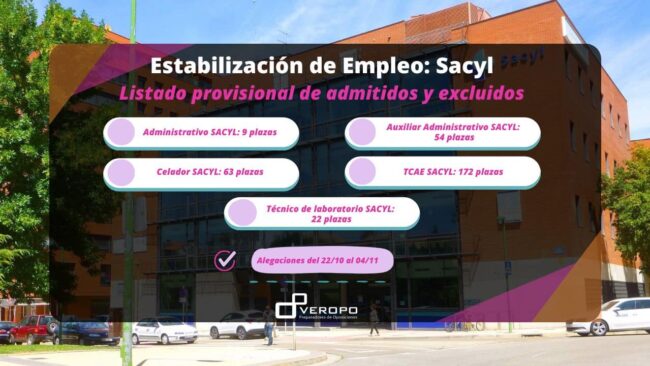 El SACYL publica el listado provisional de admitidos y excluidos para las Convocatorias de Estabilización de Empleo de Administrativo, Auxiliar Administrativo, Celador, TCAE y Técnico de Laboratorio ¡Novedades en los procesos de Estabilización de Empleo de SACYL! Nos remontamos a las Convocatorias publicadas el 28 de diciembre de 2022 de los procesos de Estabilización de…